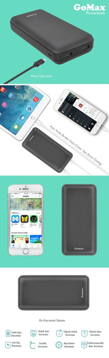 Satıcı: Elektronik MarketGOMAX POWERBANK 20000 MAH GERÇEK KAPASİTE HARİCİ BATARYA-2 GİRİŞLİ